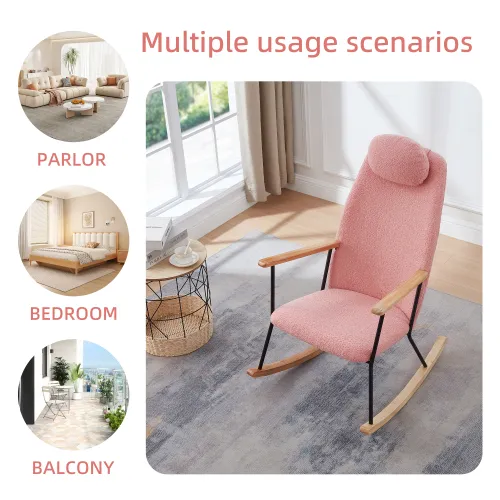 Adjustable headrest rocking chair, teddy fabric upholstered gliding rocking chair, high backrest, modern rocking chair upholstery chair