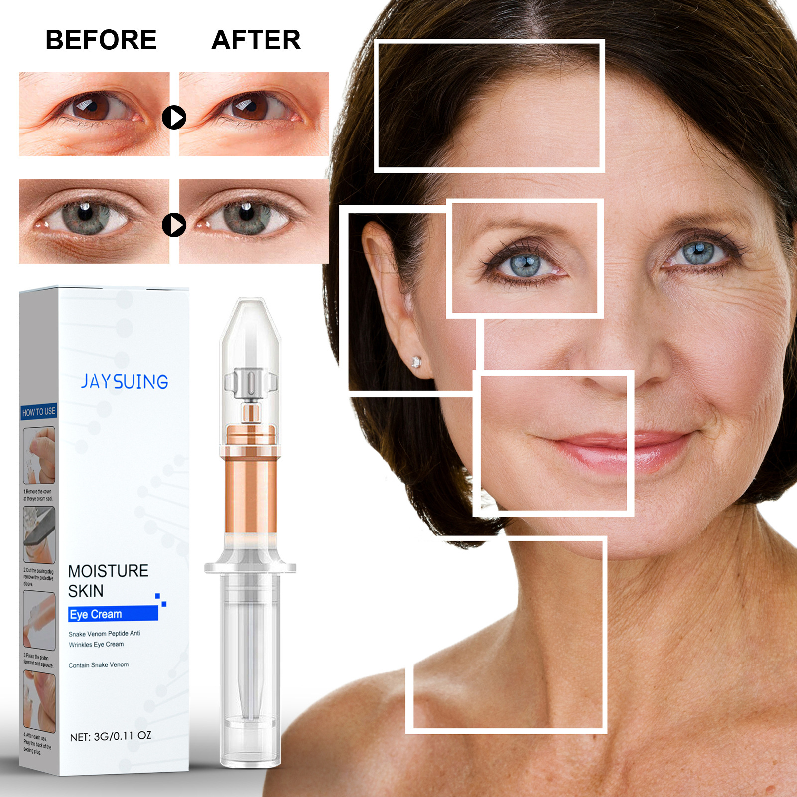 The eye cream is enriched with powerful anti-aging ingredients such as retinol, peptides, and collagen. These components work together to reduce the appearance of wrinkles and fine lines, promoting a smoother, more youthful eye area.