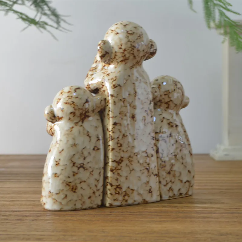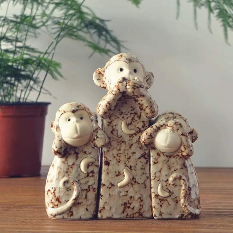 Elevate your living space with the Ceramic Three Small Monkey Decorations, a delightful set of figurines that blend charm and elegance. Perfect for living rooms, TV cabinets, or as thoughtful gifts, these monkey ornaments symbolize wisdom, humor, and positivity. Whether for home decor, wedding presents, or thoughtful gifts, these ceramic monkeys bring personality and joy to any setting.