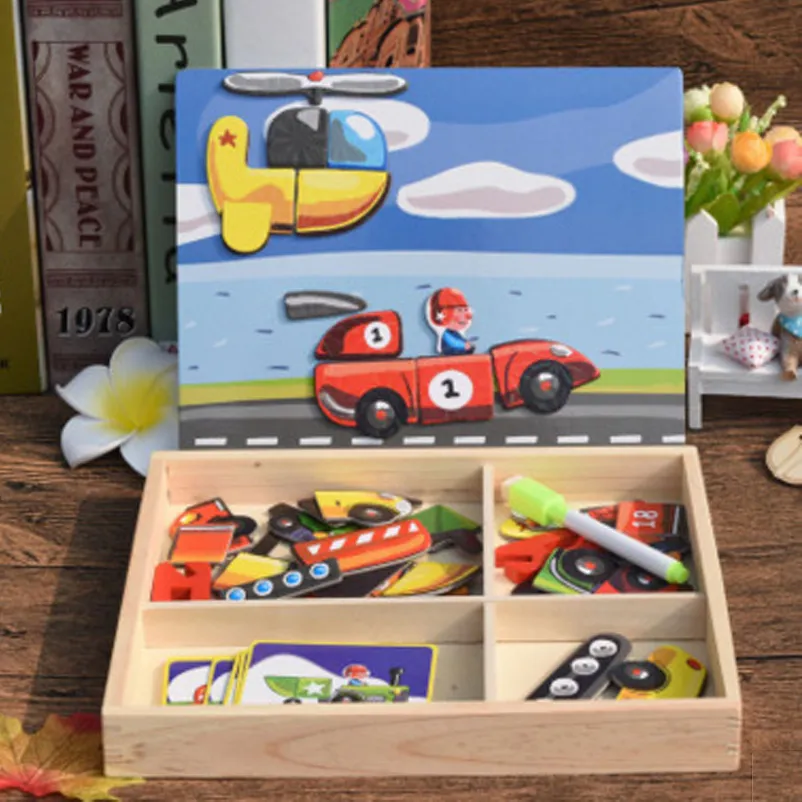 Montessori Magnetic Fun Puzzle Children's Wooden Puzzle Box Game Cartoon Educational Painting Toys For Children Gift Antistress