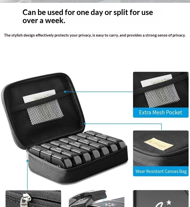 Made from high-quality, safe materials, this pill organizer is designed to withstand regular use and travel.