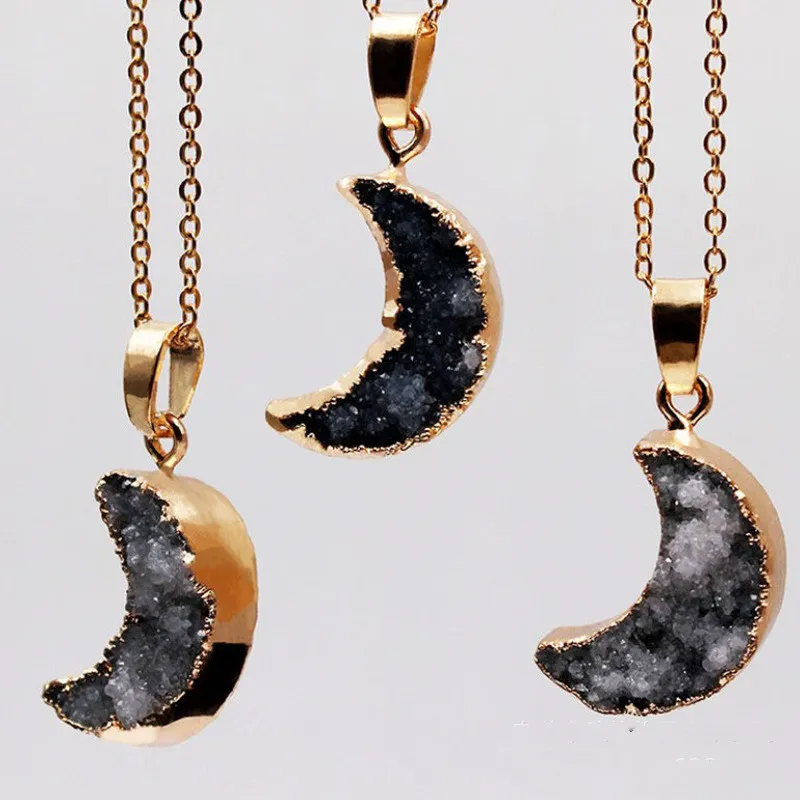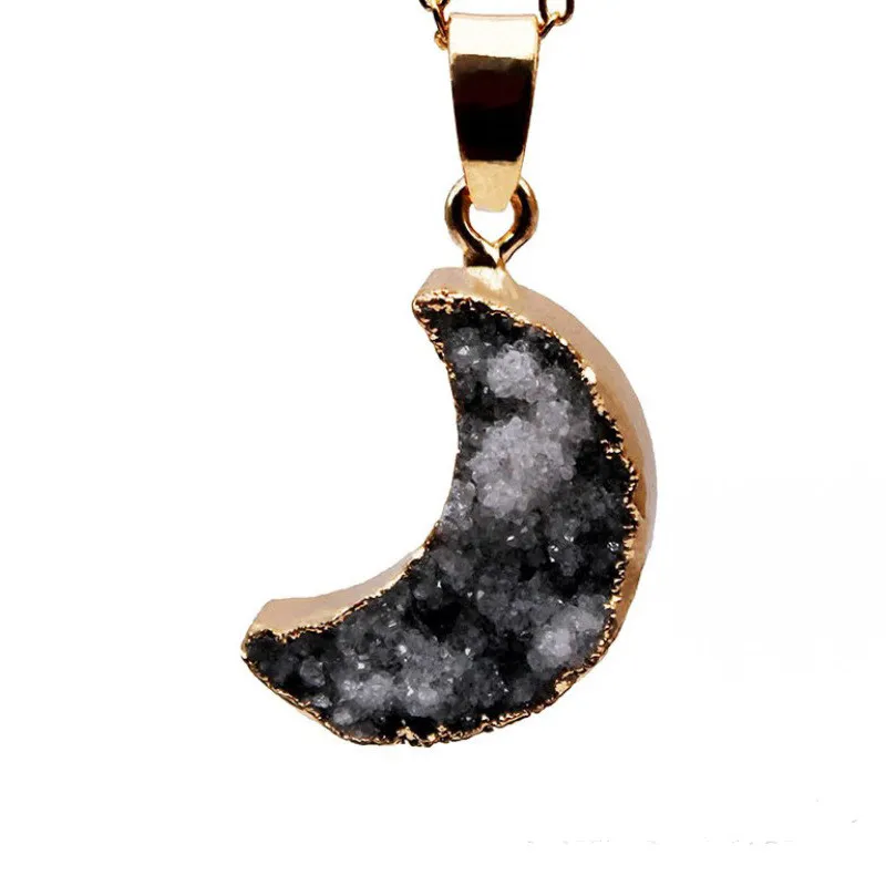 Moon Shape Necklace 18 Electroplated Coated Healing Crystal Quartz
