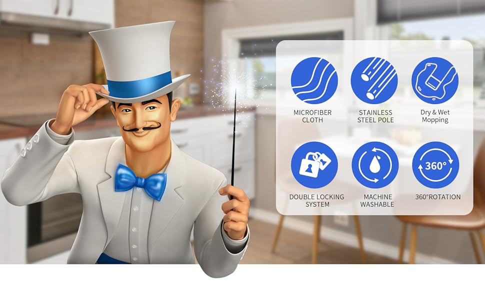 - DURABLE CONSTRUCTION - Built with durable plastic and sturdy stainless steel handle, inlcudes 3 reusable microfiber cloths and 1 dirt removal scrubber, applies to all kinds of floor such as hardwood, tile, marble, laminate, vinyl, make boring chore of cleaning your floors easy and effortless