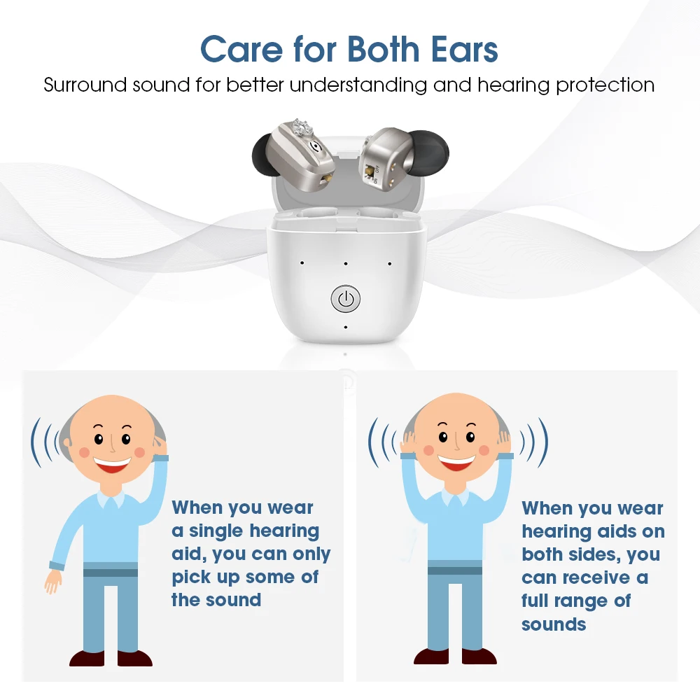wireless and come with a rechargeable box, making them ideal for individuals with hearing loss. They provide clear sound amplification for