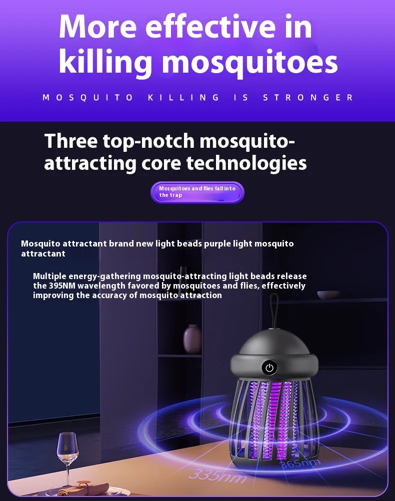 Eco-Friendly and Radiation-Free: Uses UV light to attract and trap mosquitoes, with minimal energy consumption and no