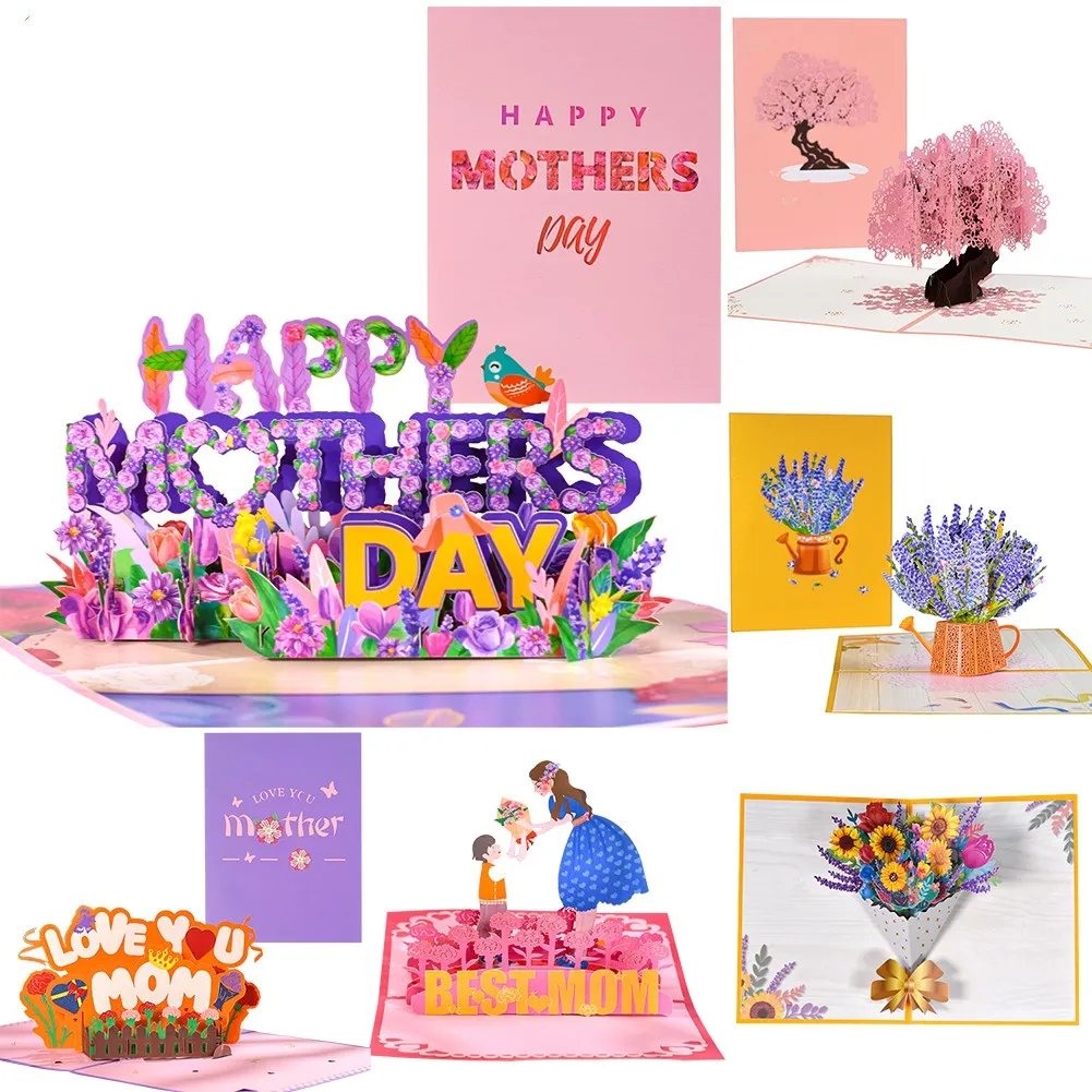 The Mother's Day pop-up 3D card is flat when folded, with a floral rose cutout on the cover that says: "Happy Mother's Day."Invite her to discover the cute pop-ups inside!When they open the cards, beautifully patterned, exquisitely crafted sculptures pop up and will create an impressive and memorable moment for your mother on Mother's Day.
