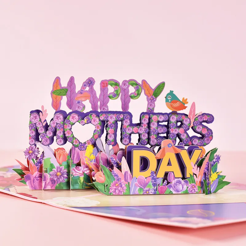 This Mother's Day-themed greeting card printed with the beautiful 3D pop-up flower phrase "Happy Mother's Day" is surrounded by brightly colored flowers, which looks romantic and elegant, implying that the romance and care of this life remember to leave a copy for the mother