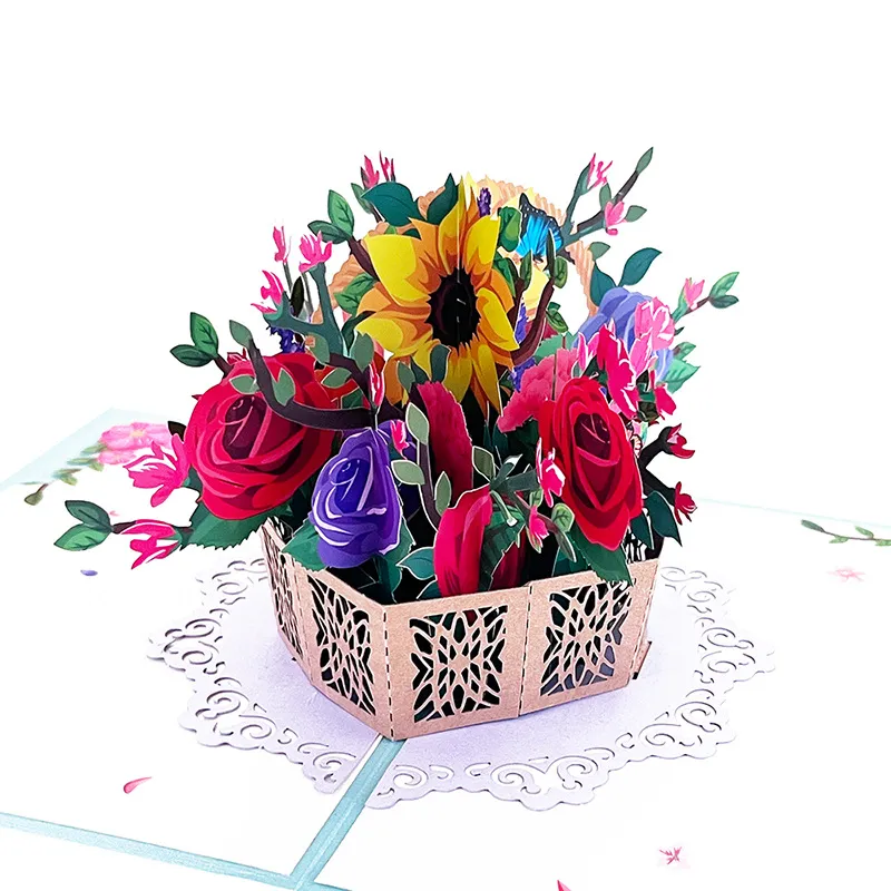 The Mother's Day pop-up 3D card is flat when folded, with a floral rose cutout on the cover that says: "Happy Mother's Day."Invite her to discover the cute pop-ups inside!When they open the cards, beautifully patterned, exquisitely crafted sculptures pop up and will create an impressive and memorable moment for your mother on Mother's Day.