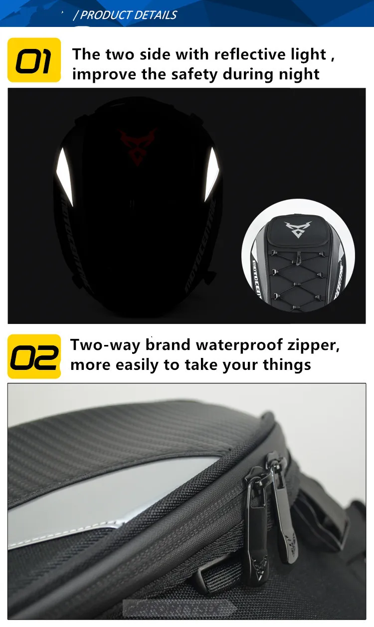 Key Features of the MOTOCENTRIC Motorcycle Back Seat Bag