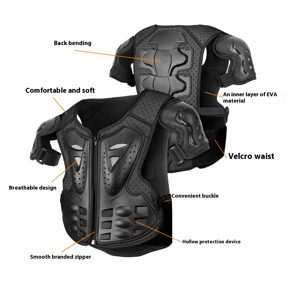The Motorcycle Children's Armour Outdoor Five-piece Set is a comprehensive and protective gear set designed for young riders. Whether your child enjoys cycling, skateboarding, or riding a small motorcycle, this set provides essential protection to ensure their safety while keeping them stylish and comfortable. Featuring durable armor for the body, knees, elbows, and wrists, this set combines safety and freedom of movement, making it perfect for outdoor sports and adventure activities. The five-piece design ensures all-around protection while allowing your child to enjoy their outdoor adventures with confidence.