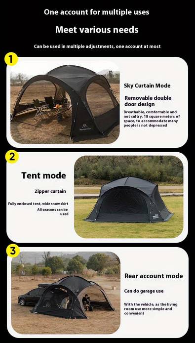Polyester Fabric: Made from high-quality polyester fabric, the tent is water-resistant and durable, built to withstand