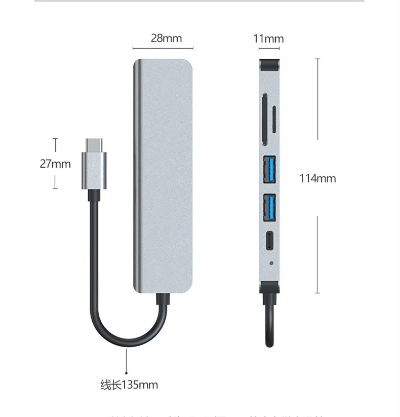 Interface number: ad-033 six in one type-C to usb*2+sd+tf+pd+hdm