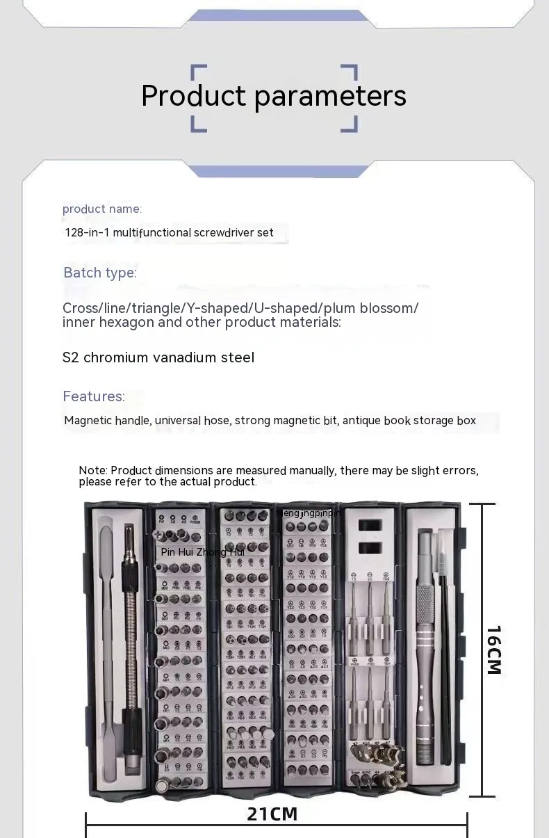The Multi-Functional 128 in 1 Magnetic Precision Screwdriver Set is a comprehensive tool kit designed for professionals, hobbyists, and anyone who loves DIY projects. Whether you're working on electronics, home repairs, or assembling furniture, this set provides a wide range of screwdrivers and bits to handle any task. Its magnetic tips ensure precision, making it easy to work with small screws and delicate components.