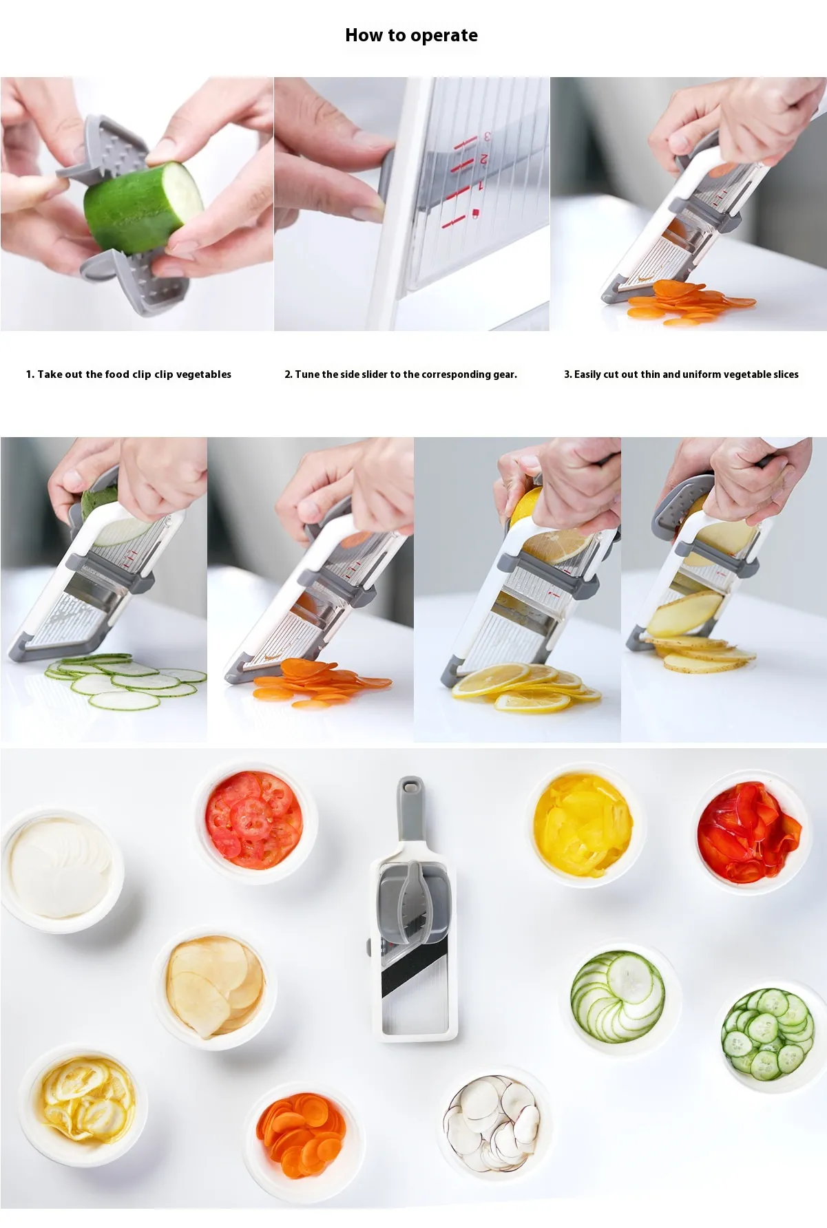 Using the Multi-Functional Vegetable Household Potato Slicer is simple and quick. Here's how to make the most of this versatile kitchen tool: