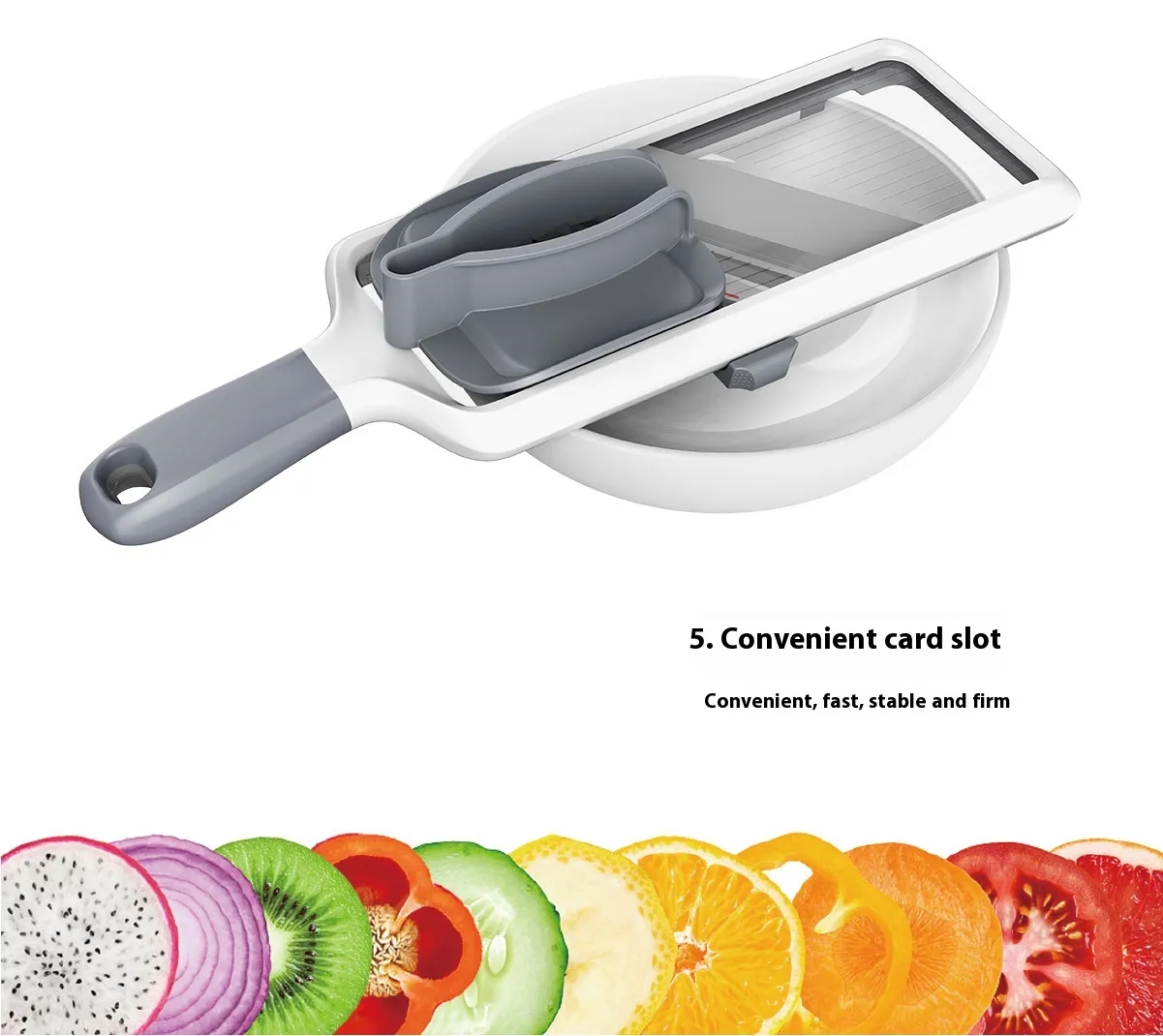 The Multi-Functional Vegetable Slicer is designed to handle a variety of tasks. Whether you're slicing, shredding, or chopping, this tool ensures consistent, professional results for all your vegetables. It comes with multiple interchangeable blades to customize your cuts: