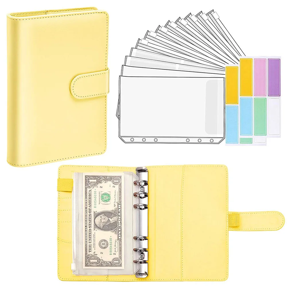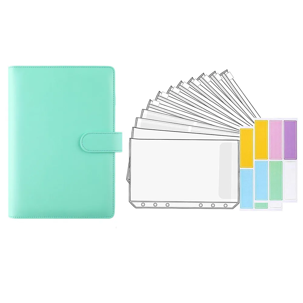 The package includes: A6 Macaron color loose leaf book+2 pieces of single opening pvc envelope+2 pieces of double opening bill bag+8 pieces