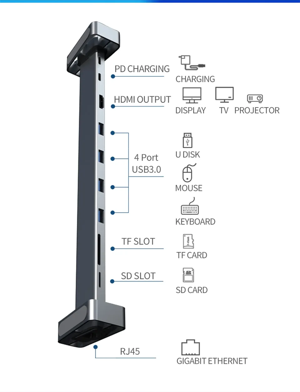 Crafted from high-quality, durable materials, the Multifunctional Docking Station Bracket Converter is built to withstand everyday use while providing reliable performance. Its portable design allows you to take it on the go, ensuring you have all the connectivity and support you need wherever you are. Whether you’re setting up a home office, working remotely, or presenting at a meeting, this all-in-one docking station enhances productivity and ensures seamless device integration. Experience the ultimate convenience and functionality with this innovative and versatile solution for your tech needs.
