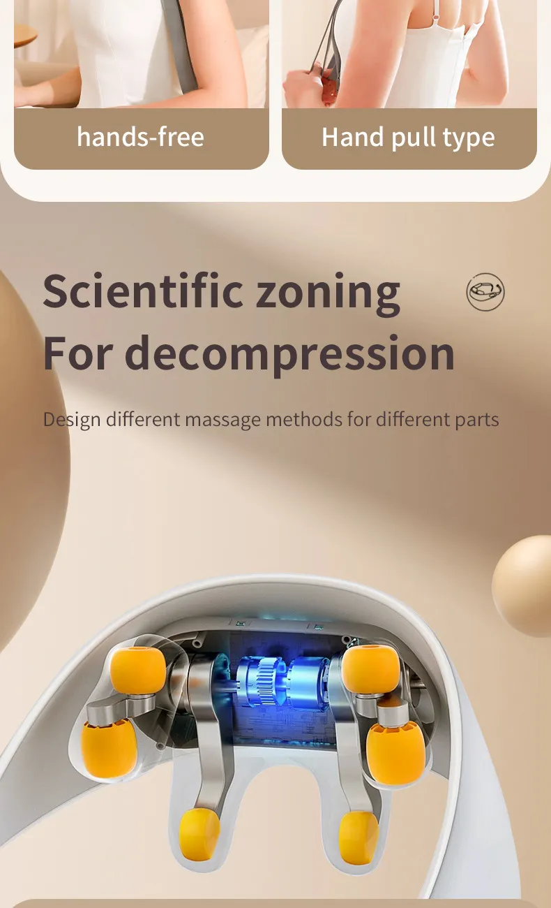 The massage and heat functions work together to target and relieve muscle tension and stiffness in your neck, shoulders, and upper back. Regular use can help reduce discomfort from poor posture, stress, or prolonged sitting.