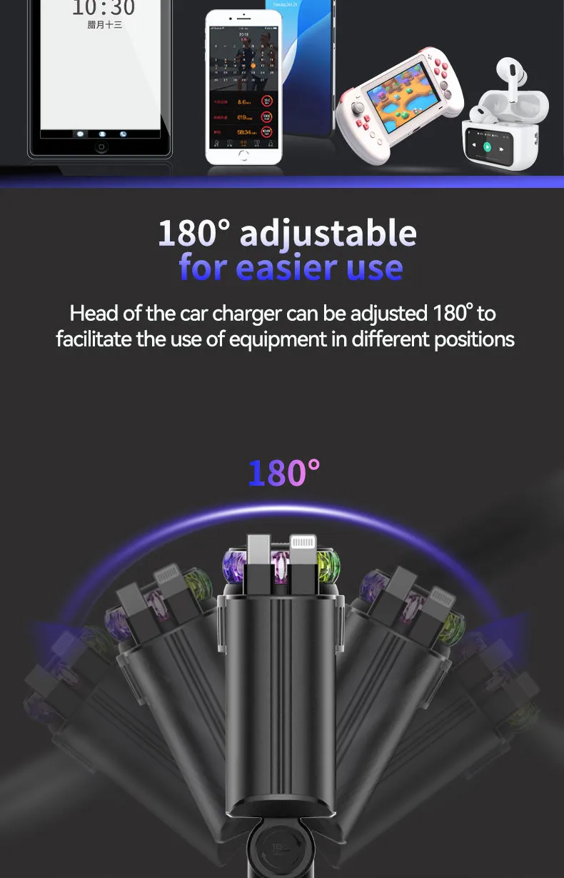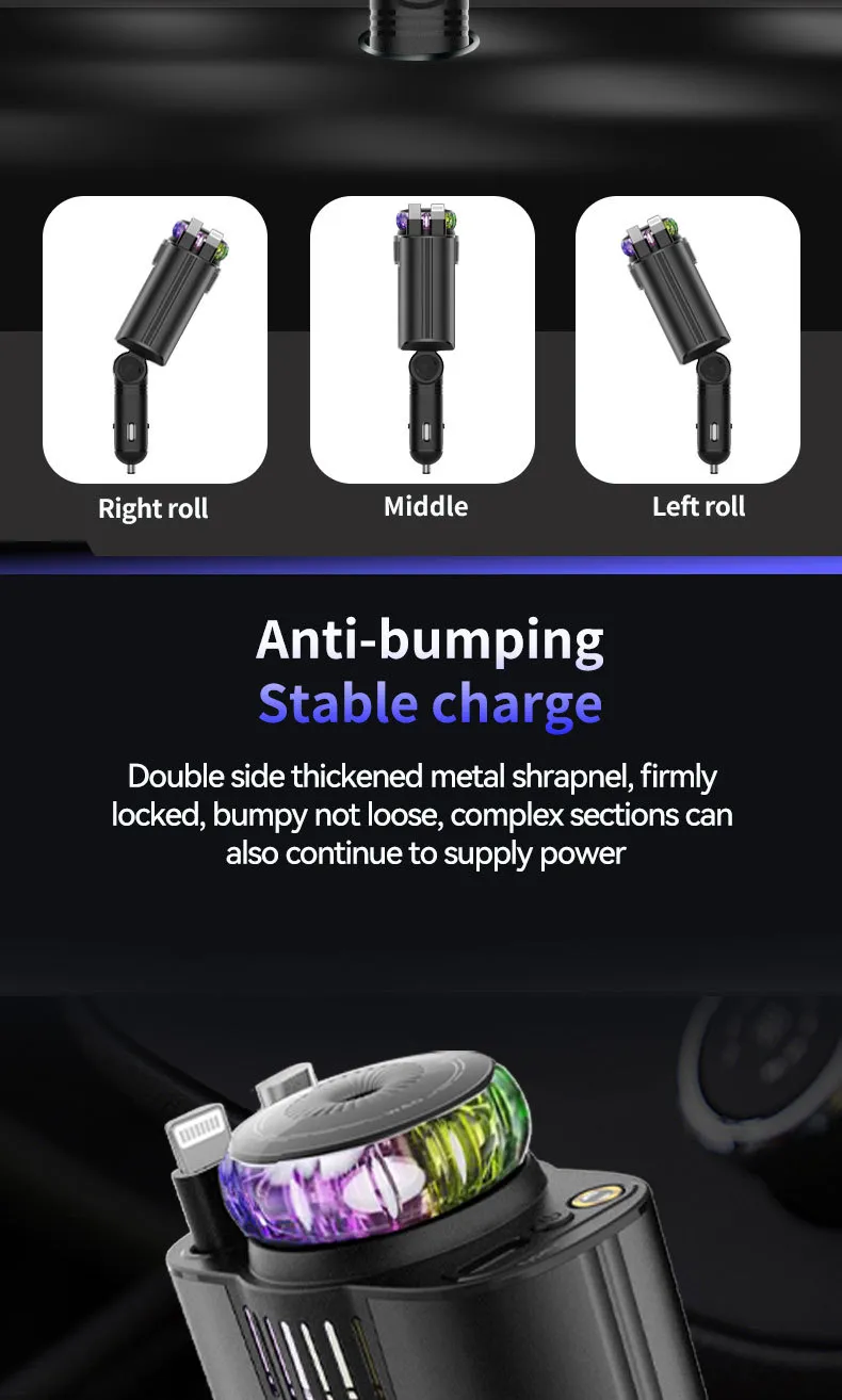 The sleek purple light design adds a modern touch to your car interior. Crafted with high-quality materials, the charger is built to last, resisting daily wear and tear while providing long-term performance.