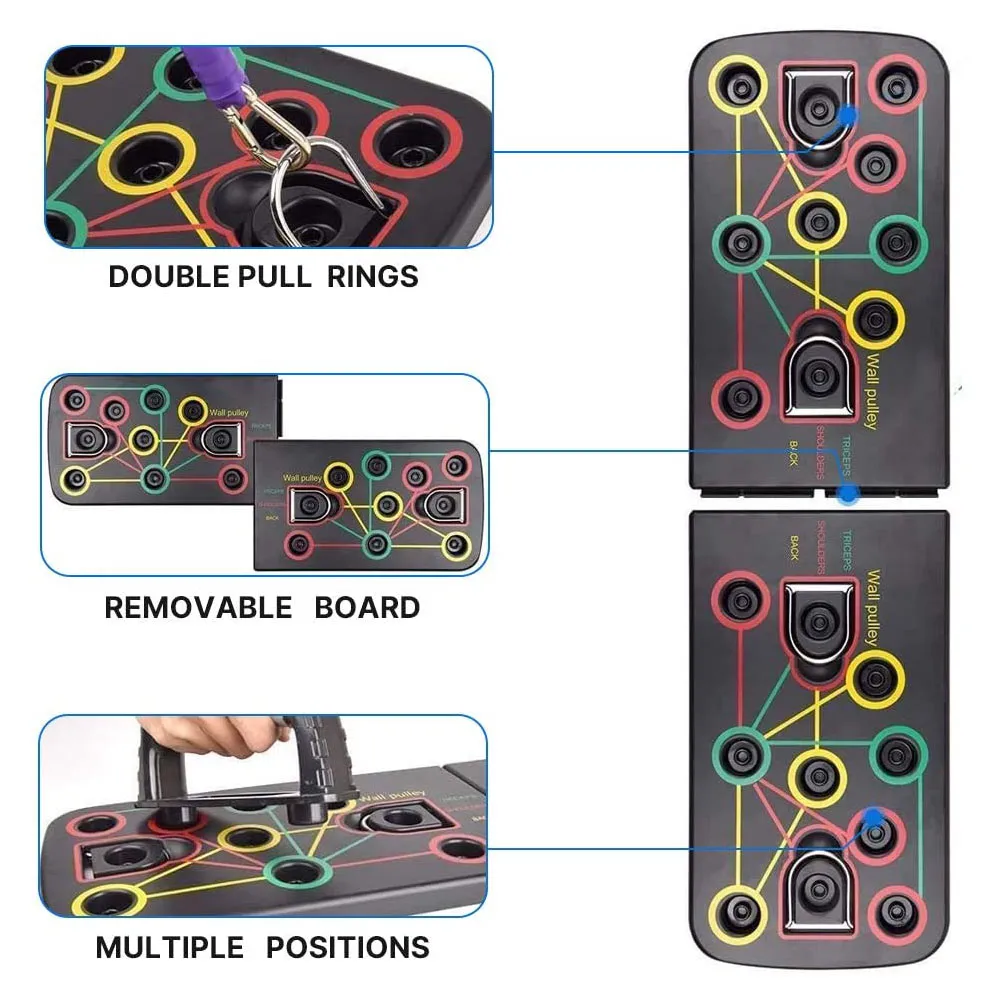 Whether you're looking to build upper body strength with push-ups, improve your core with planks, or strengthen your arms and back with resistance ropes, this all-in-one combination bracket has everything you need. It’s perfect for home workouts, small gym setups, or even outdoor training sessions, offering a comprehensive fitness experience wherever you are.