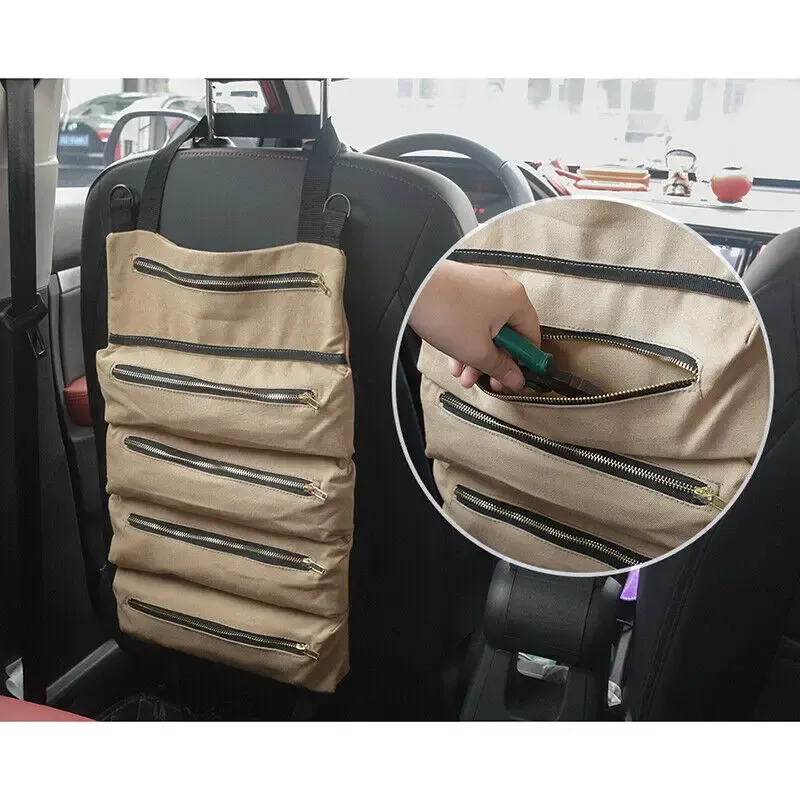 *Canvas Tool Roll Up Bag Wrench Storage Carrier Pouch Car Back Seat Organizer