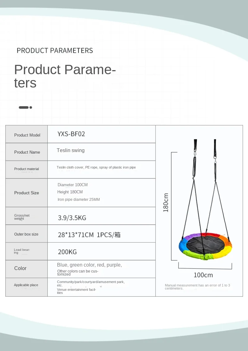 Designed with comfort in mind, the Parent-child Hanging Hammock Swing offers a cozy, relaxing experience. The soft, supportive Teslin material molds to your body, providing ultimate relaxation for both parents and children. The swing’s gentle sway allows you to unwind while enjoying nature and fresh air.