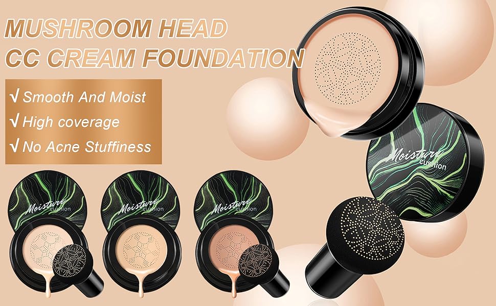 I love how hydrating this air cushion CC cream is. It doesn't dry out my skin, and the coverage is perfect for everyday wear. The mushroom puff makeup applicator is so soft and blends the product seamlessly.