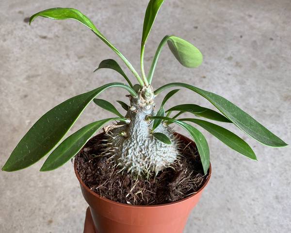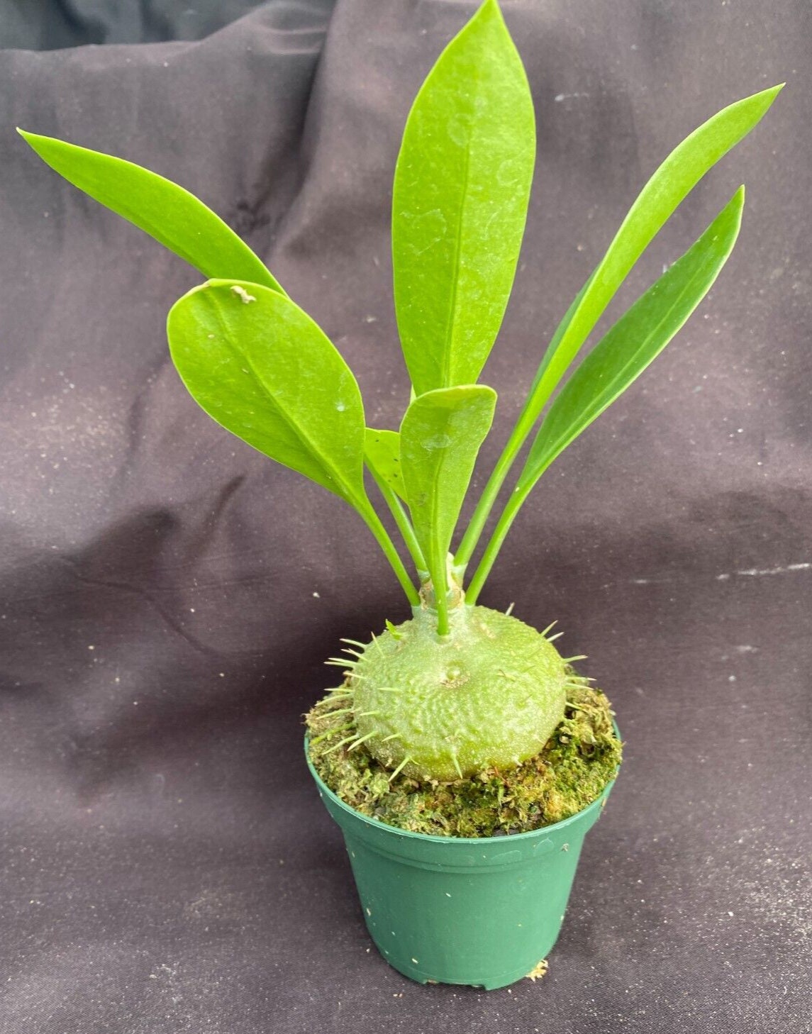 - Distinctive Appearance: Myrmecodia beccarii features a bulbous, woody caudex covered in small, wart-like structures. From this base emerge long, slender stems adorned with lanceolate leaves. The overall appearance is both unusual and visually striking, making it a great conversation piece.