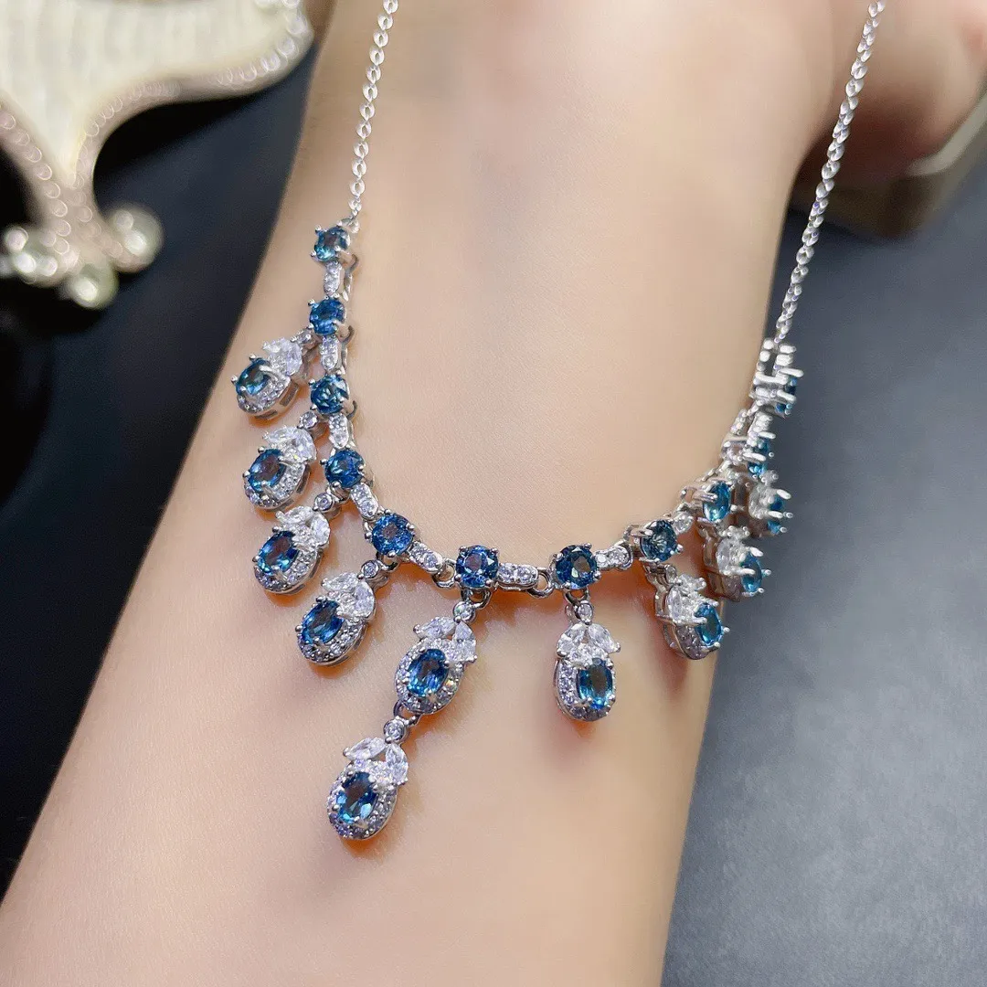Natural Blue Topaz Necklace Women Fashion