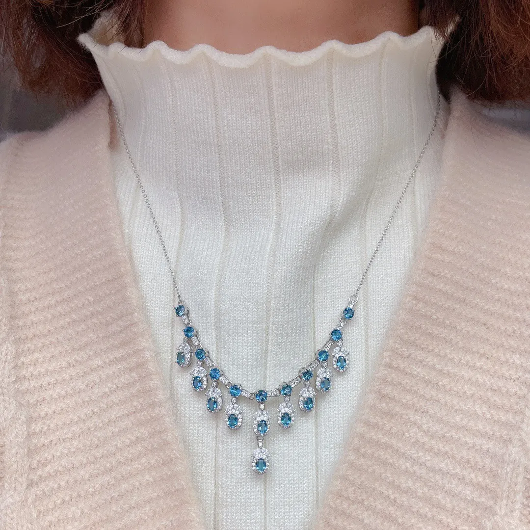 Natural Blue Topaz Necklace Women Fashion