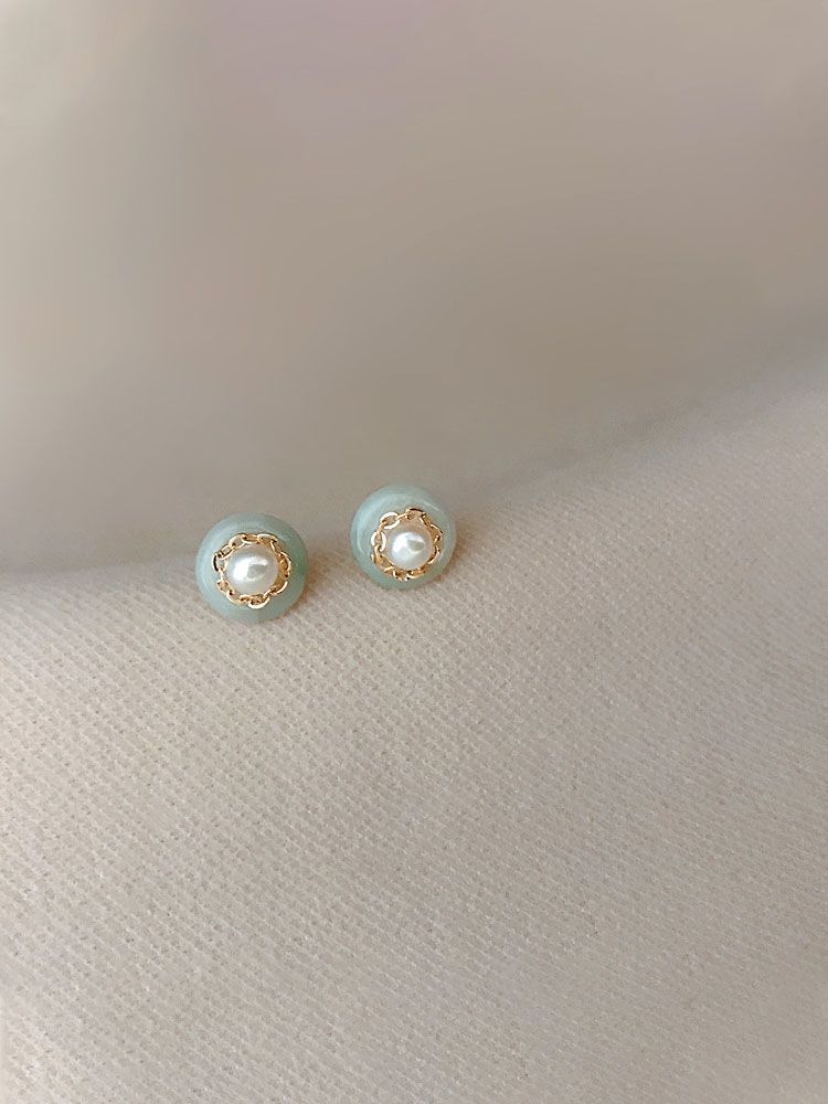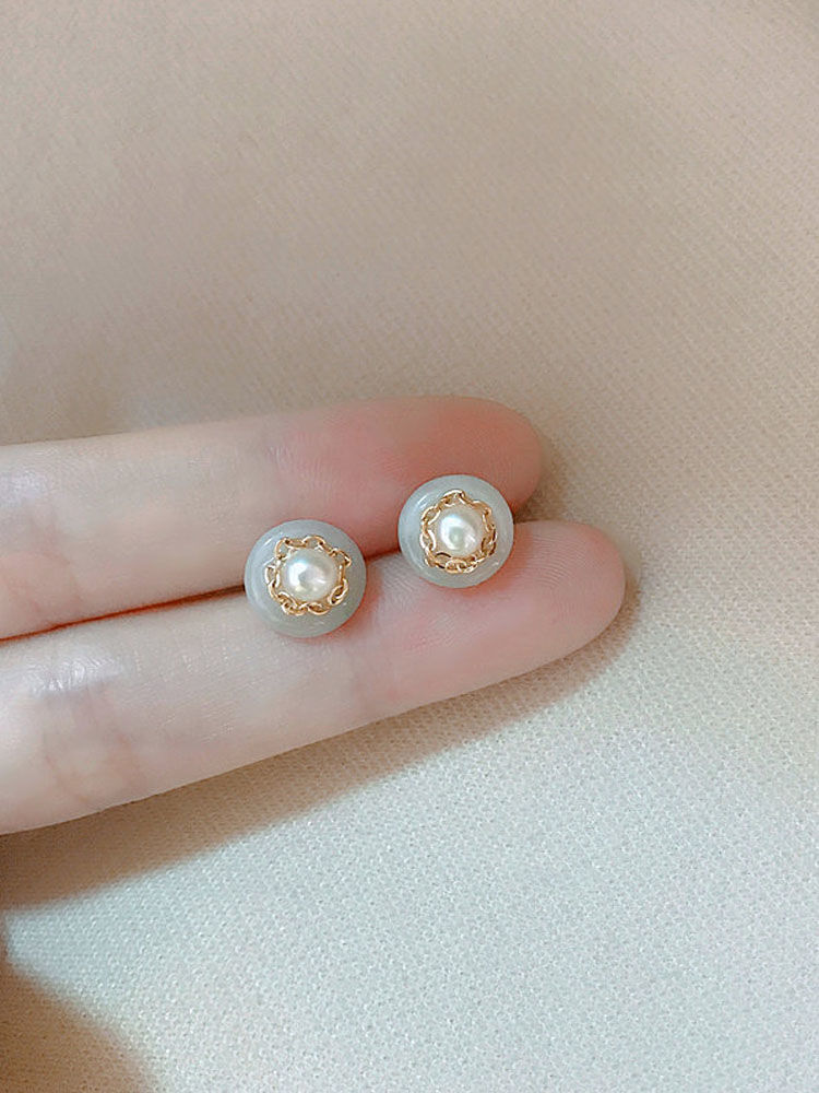 Natural Chalcedony National Temperamental Pearl Stud Earrings