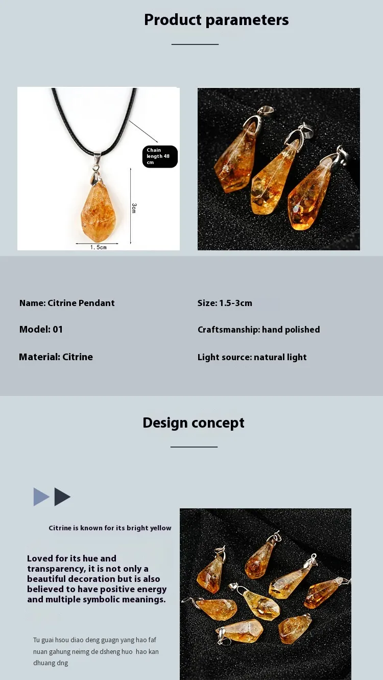 Natural Citrine Stones: Genuine citrine crystals, each with unique variations in color and shape, ensuring no two pieces