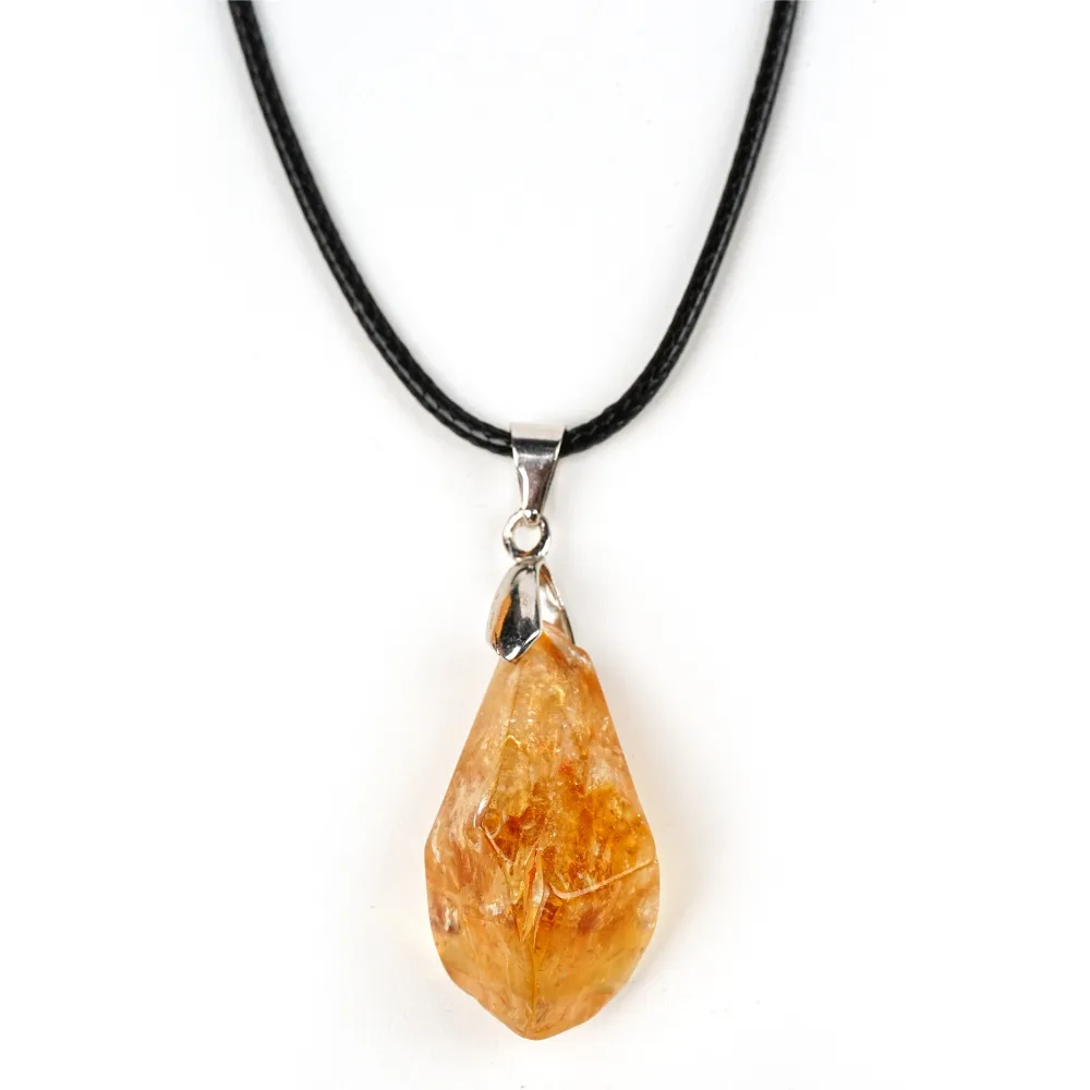 Natural Citrine Cluster Pendant Irregular Raw Stone Necklace