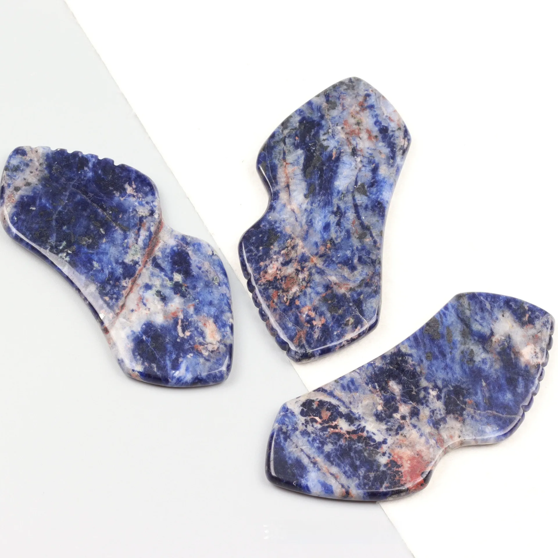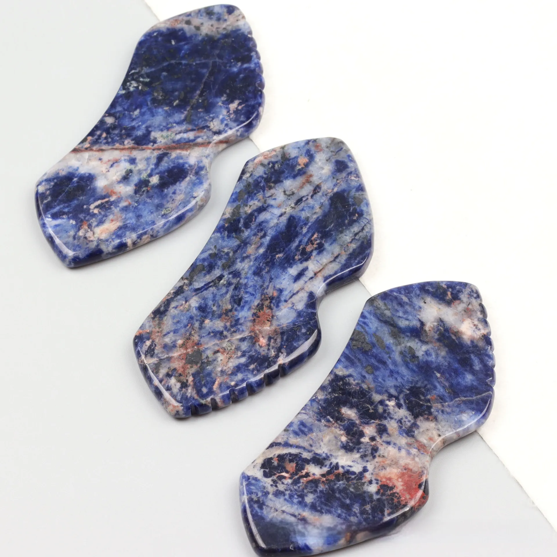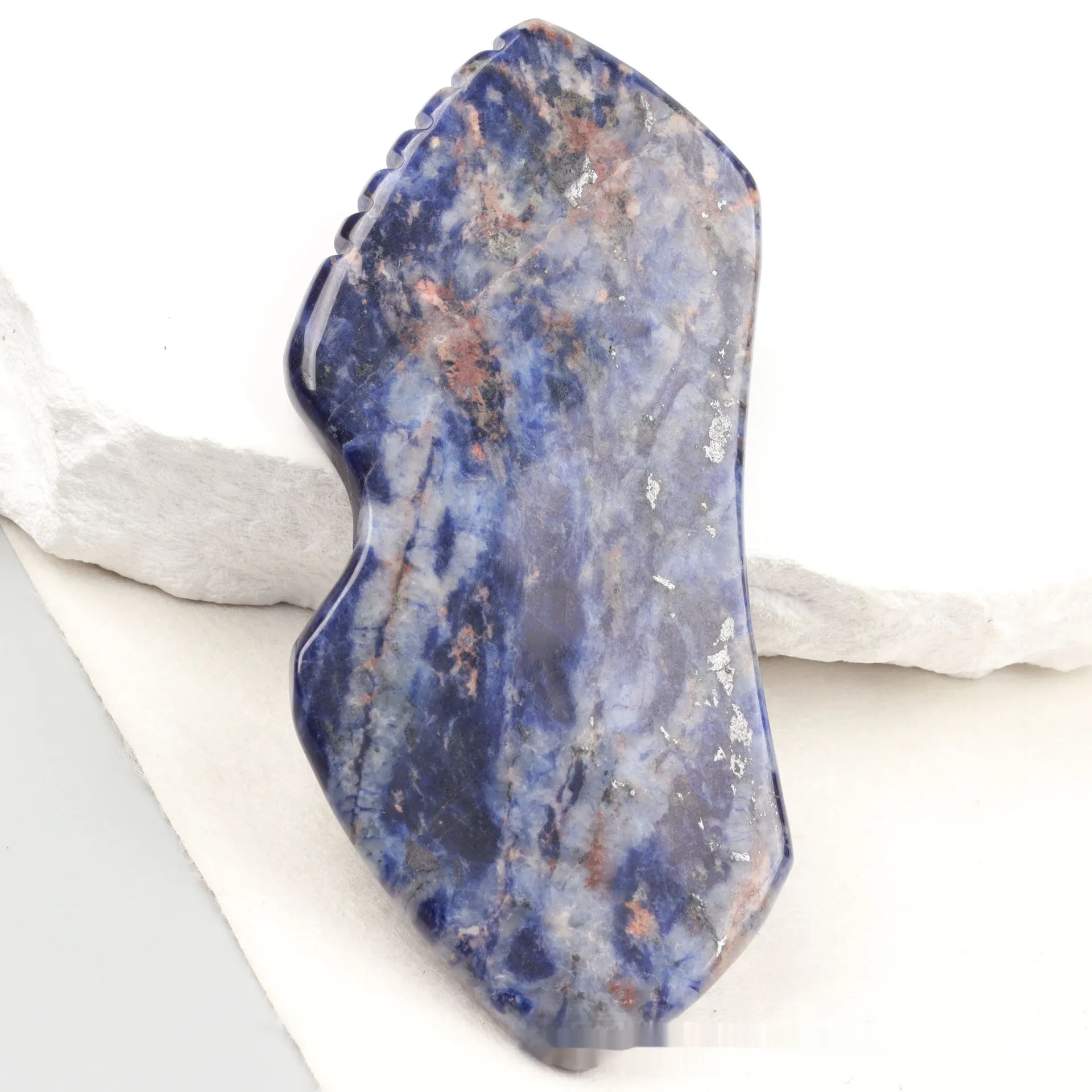 This versatile tool also doubles as a facial massager, offering additional benefits such as improved skin elasticity, reduced puffiness, and enhanced relaxation. Whether you're growing a full beard or maintaining a shorter style, the Natural Crystal Blue Grain Stone Beard Scraping Plate with Teeth is the perfect addition to your grooming kit.