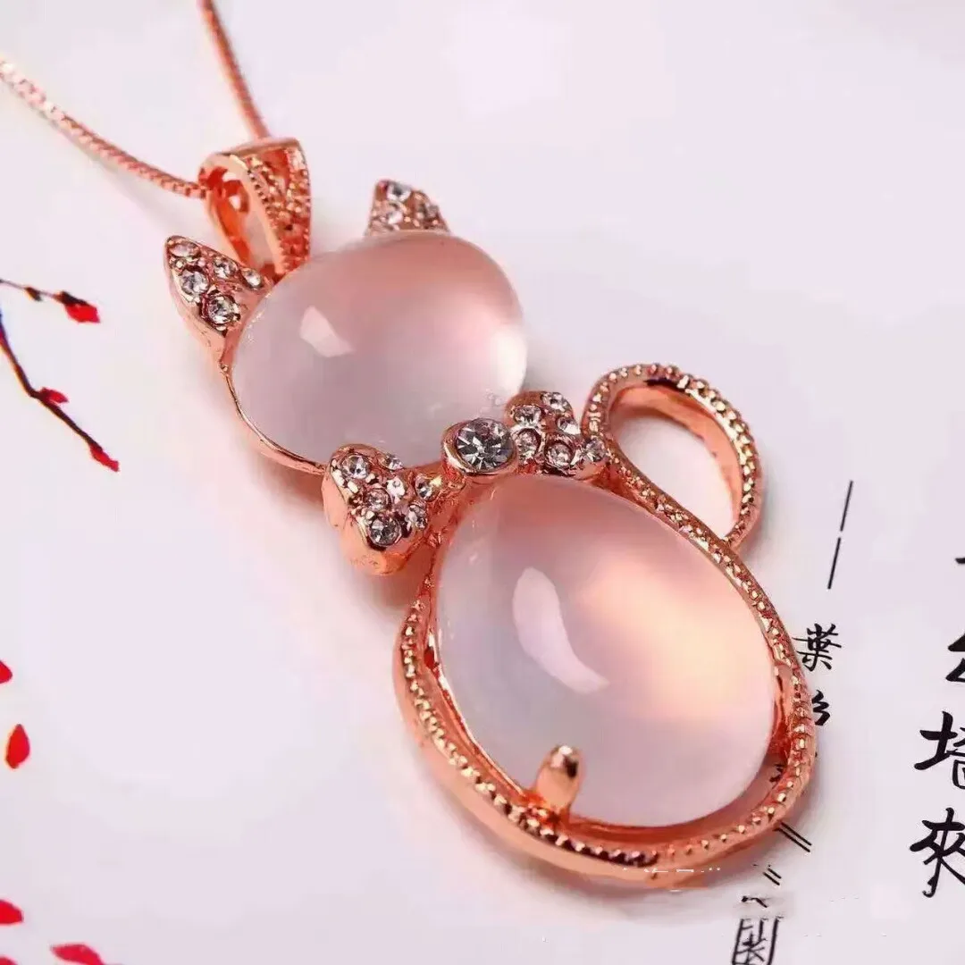 Natural Crystal Cat Pendant Clavicle Chain Matching