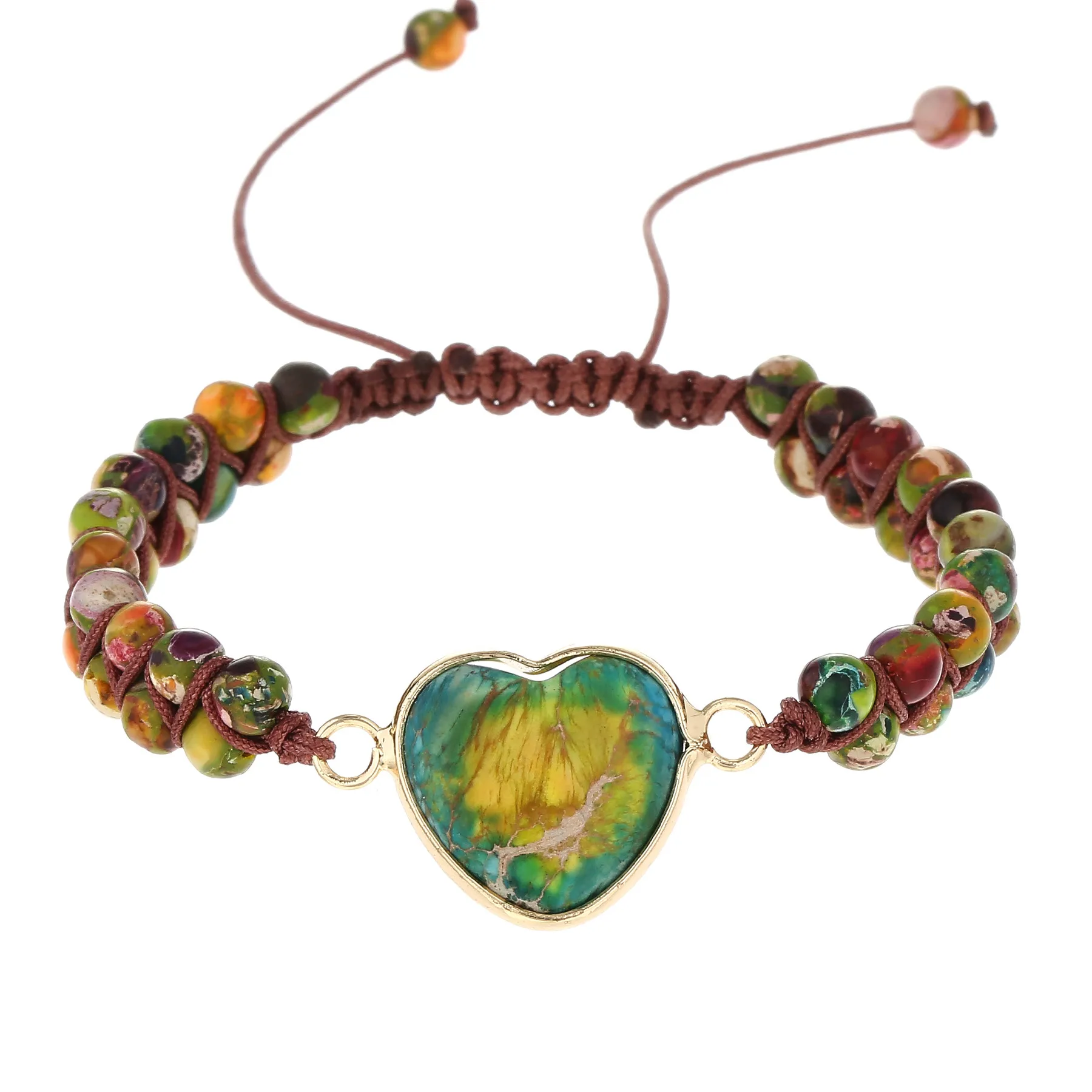 Whether you're dressing up for a special occasion, looking for a meaningful gift, or simply adding a boho-chic accessory to your wardrobe, the Natural Emperor Stone Heart-shaped Double-layer Hand-woven Adjustable Bracelet is a perfect choice.