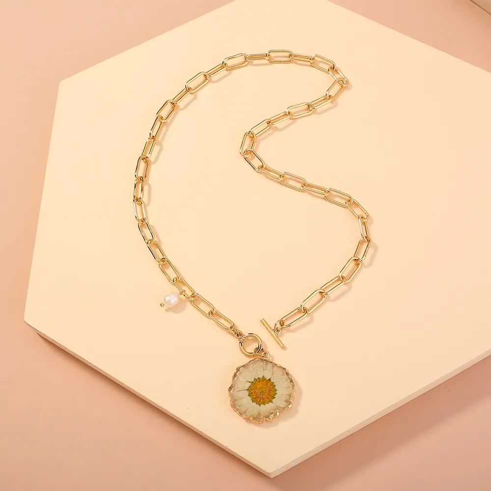 Natural Freshwater Pearl Chrysanthemum Pendant Necklace