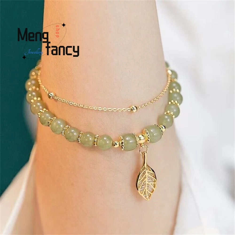 Add a touch of nature-inspired elegance to your accessory collection with the Natural Hetian Jasper Bracelet. This exquisite piece combines the beauty of Hetian Jasper with delicate jade leaves and golden branch accents, creating a stunning bracelet that embodies grace, sophistication, and a connection to nature. Perfect for young women and fashion-conscious individuals, this bracelet enhances any outfit, bringing a sense of elegance and charm. Known for its vibrant green hue, Hetian Jasper complements the golden branch details, offering a look that’s both unique and luxurious.