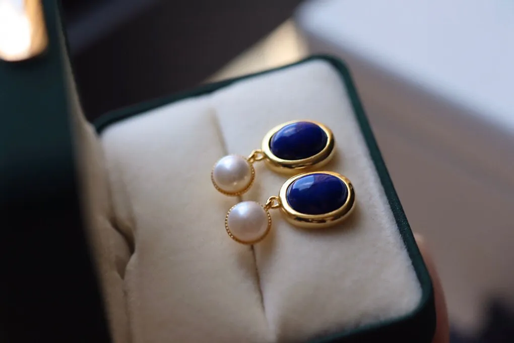 Natural Lapis Lazuli Pearl Earrings: Timeless Elegance with a Touch of Luxury