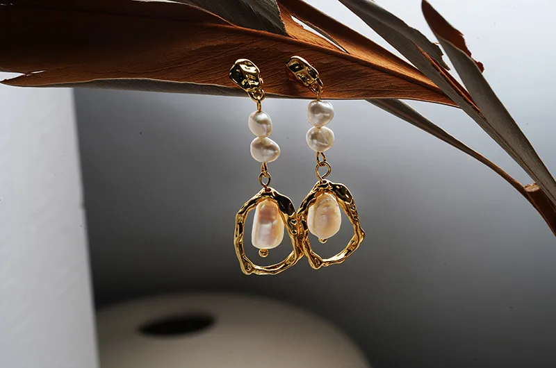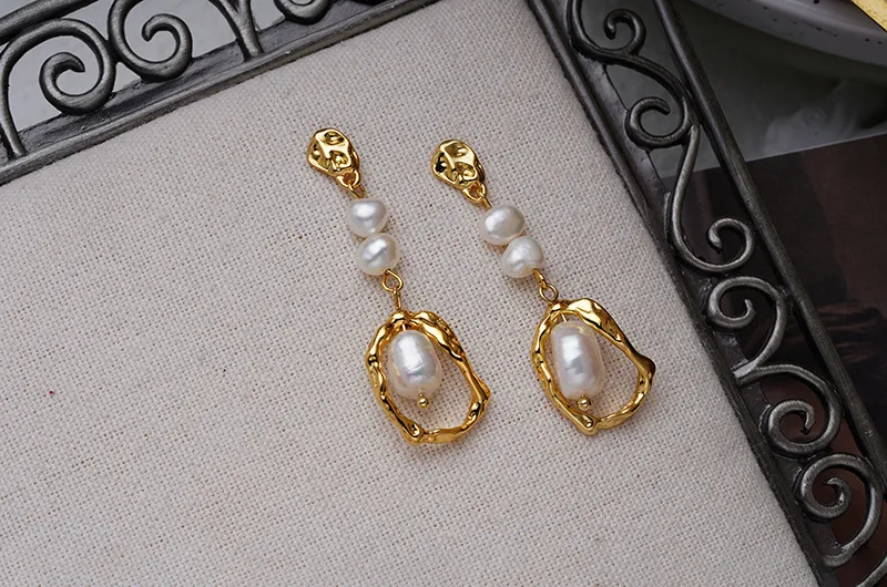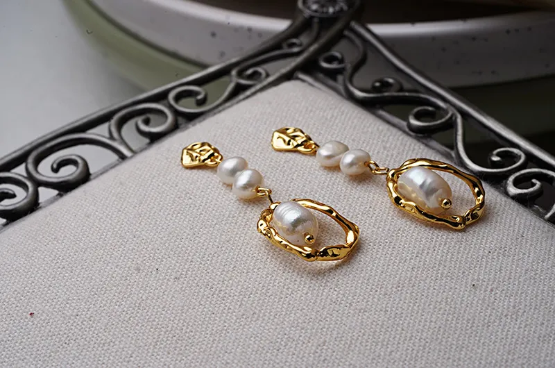Natural Pearl Earrings Female Temperament Advanced Long Retro