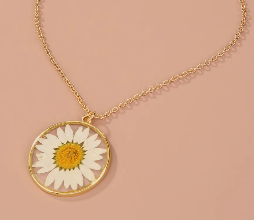 Natural Plant Dried Chrysanthemum Pendant Necklace