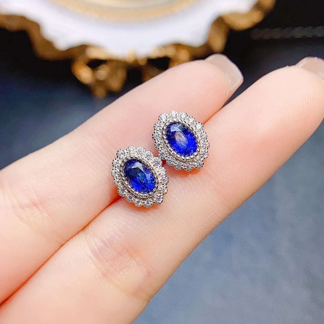 Natural Sapphire Stud Earrings S925 Silver Inlaid Main Stone: Elegant, Timeless, and Radiant Jewelry