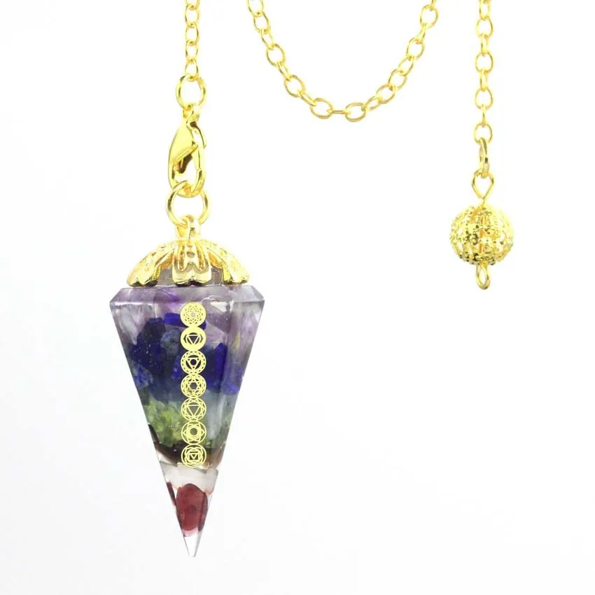 Key Features of the Natural Seven Chakra Crushed Stone Resin Hexagon Pendulum