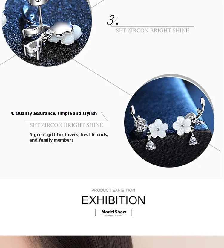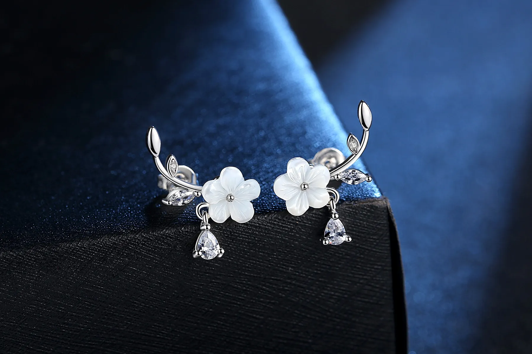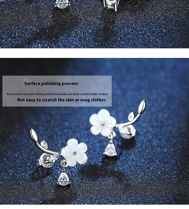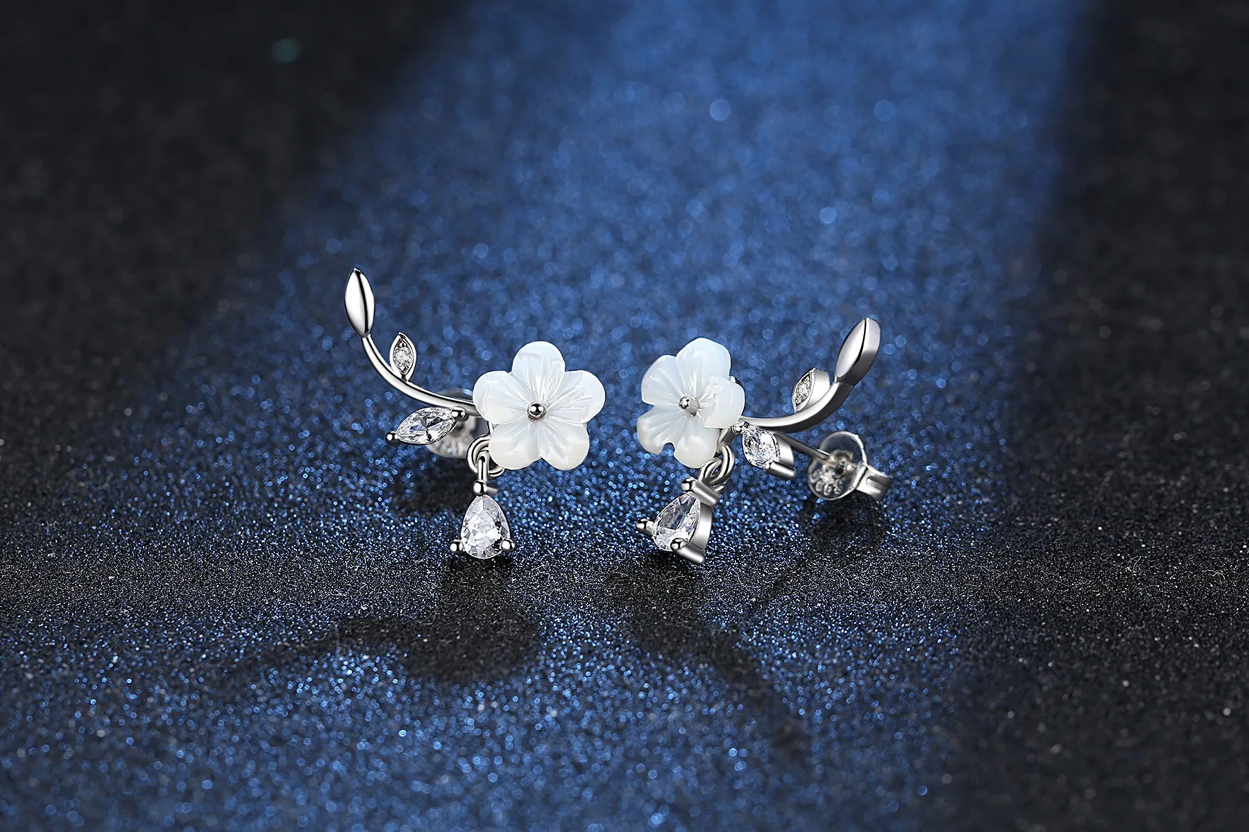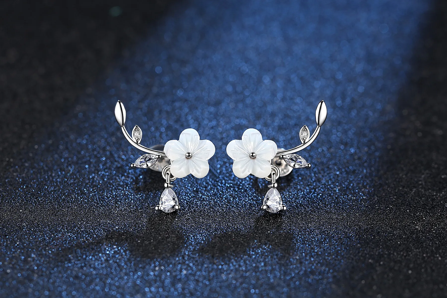 Natural Shell Hand Carved Flower Silver-plated Ear Studs