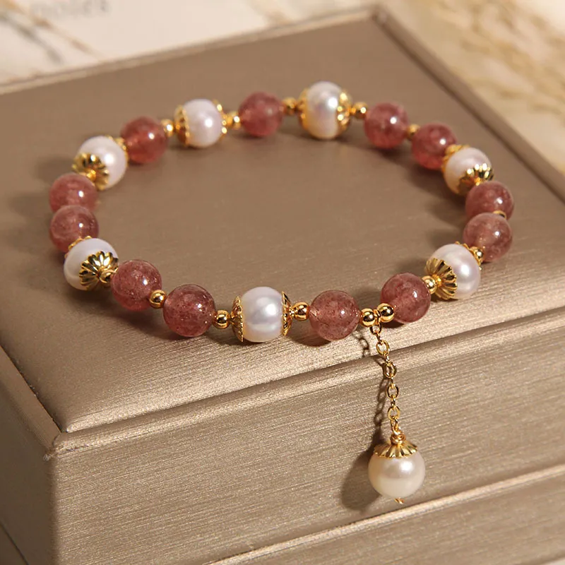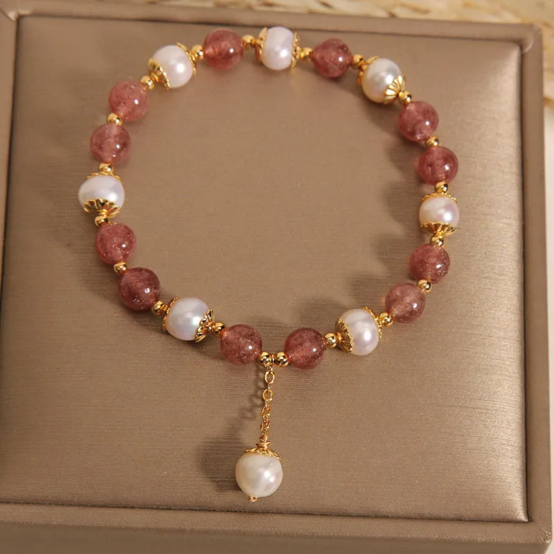 Color: simple natural pearl pendant white opal, simple natural pearl pendant strawberry quartz