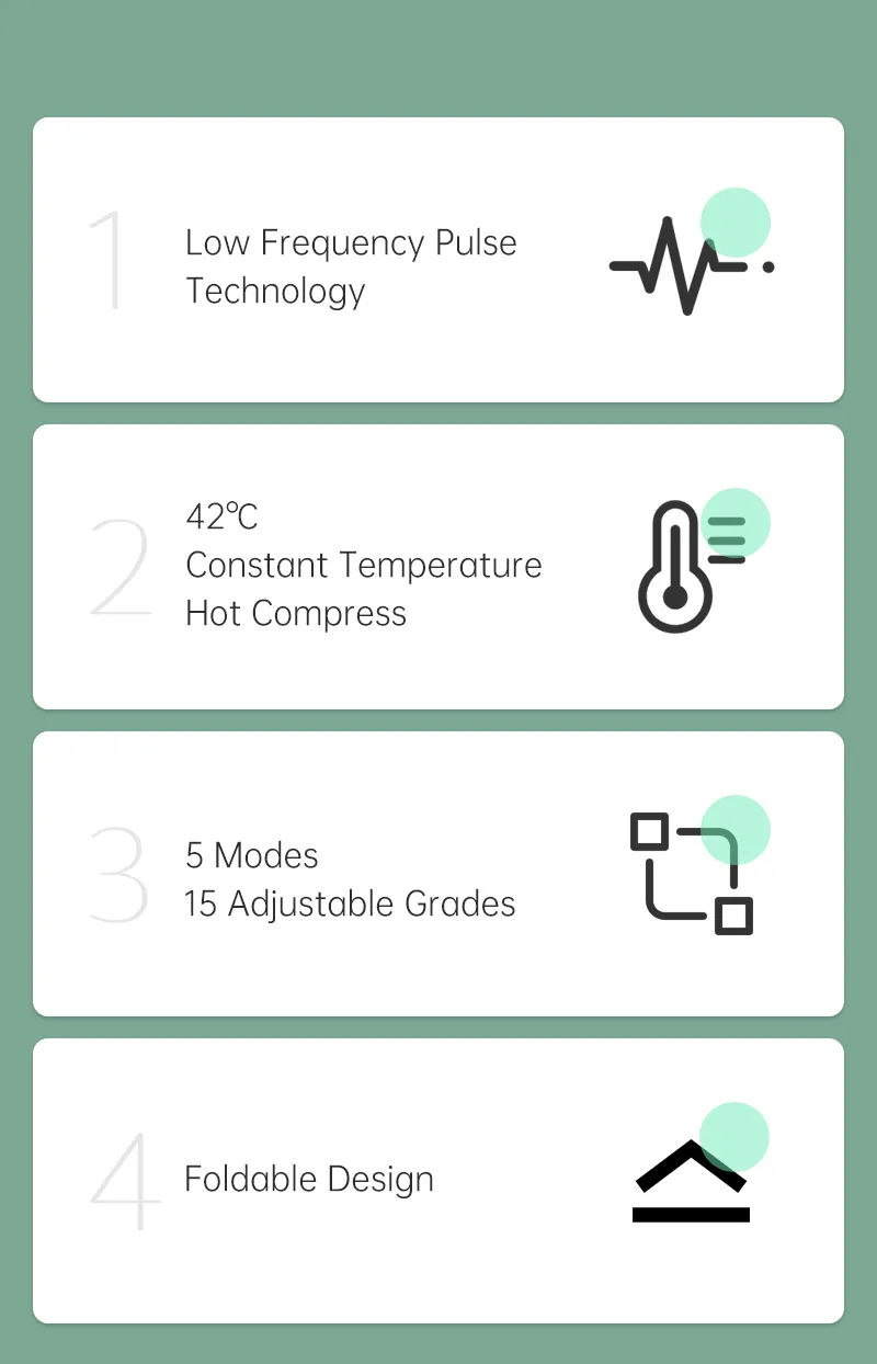 3. Design of 15-grade intensity adjustments, and 5 different massage modes.