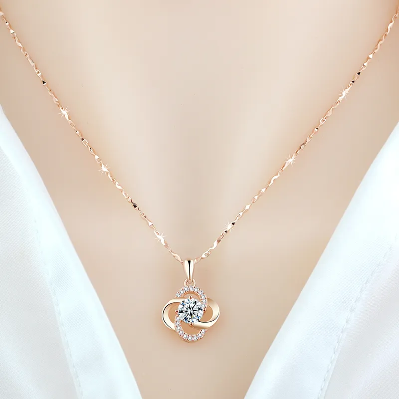 Necklace 925 Sterling Silver Plated 18k Rose Gold Necklace Female Clover Clavicle Chain For Girlfriend''s Birthday Valentine''s Day Gift