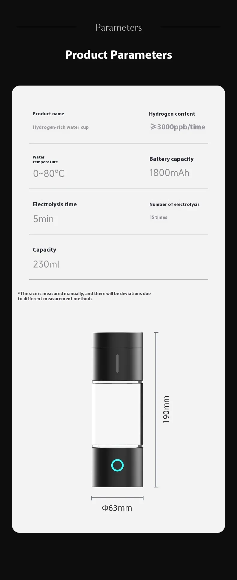 Introducing the Negative Molecular Membrane High Concentration Micro-electrolysis Beauty Hydrogen-rich Water Boiled Water Cup, a cutting-edge innovation designed for health-conscious individuals seeking clean, hydrogen-rich water. This portable cup ensures high-quality hydration with advanced filtration and electrolysis technology, delivering water enriched with beneficial hydrogen molecules for enhanced well-being.