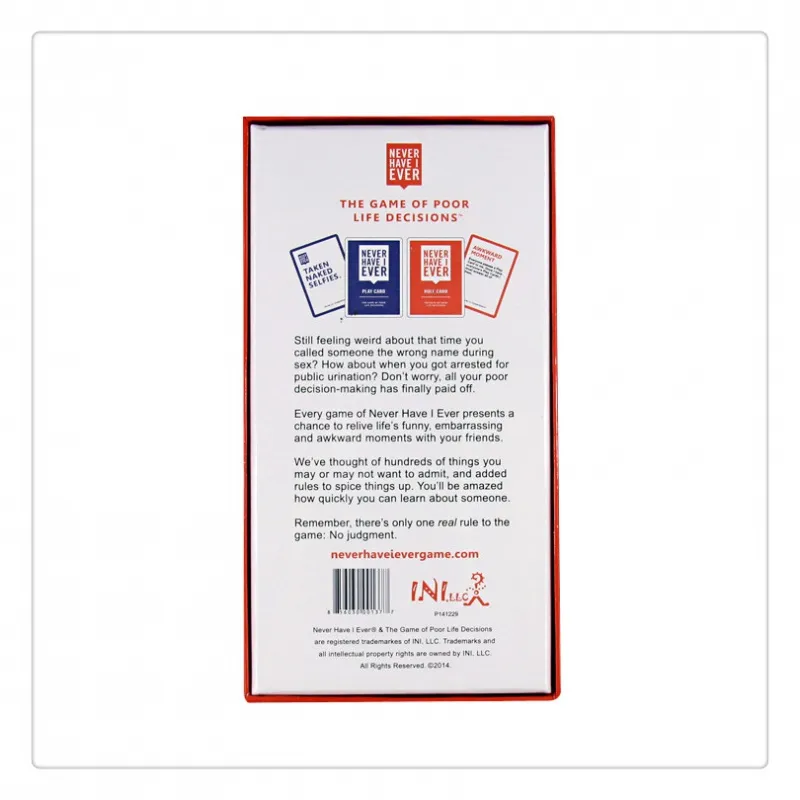 Whether you're hosting a party, going on a weekend getaway, or just looking for a fun way to spend time with friends, the Never Have I Ever Luxury Boxed Game provides hours of entertainment, laughter, and revelations.
