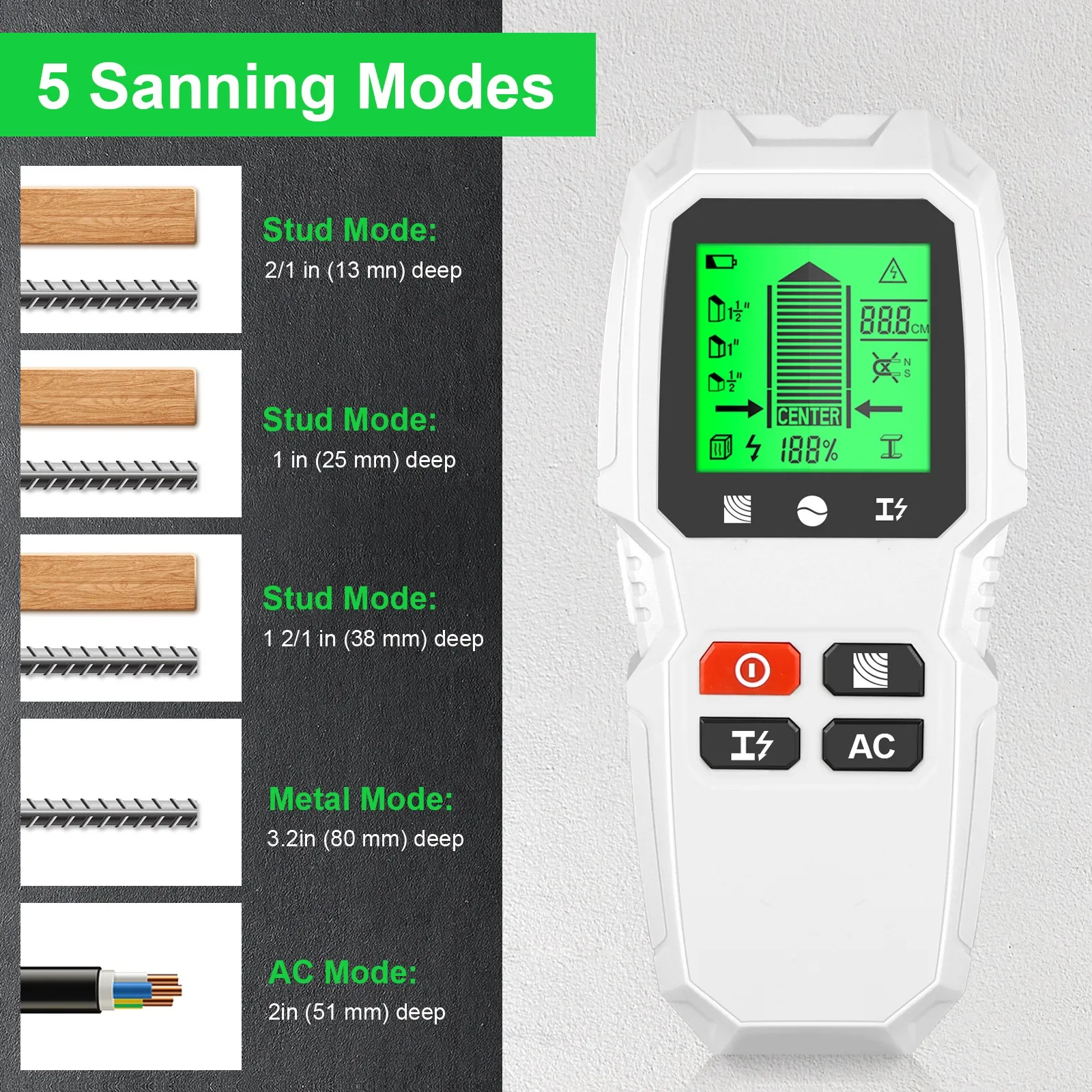 The New 5-in-1 Wall Detector is designed for speed and precision. With auto-calibration, the device adjusts itself to the surface it’s scanning, ensuring accurate detection every time. This means that you don’t need to manually calibrate the tool—simply turn it on, start scanning, and it will automatically adjust to give you the most reliable results.